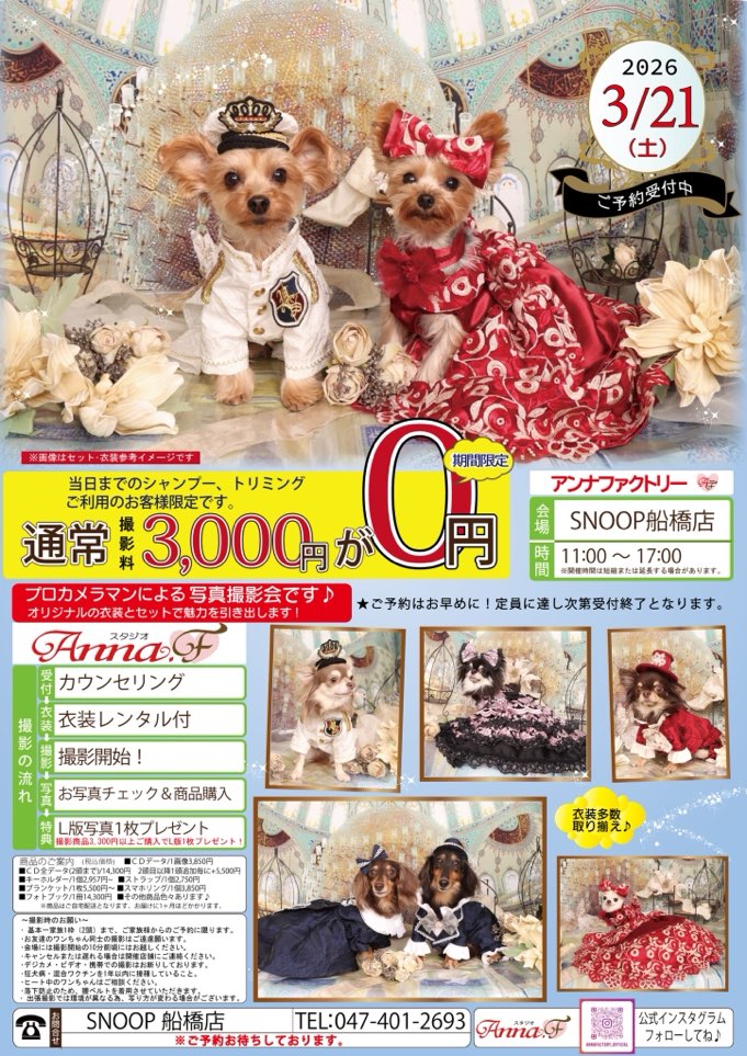 【特典1】当日までのシャンプー・トリミングご利用で撮影料通常3.300円が0円✨